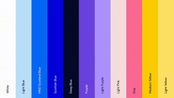 To match the more human tone of the new brand, the main typeface combines a professional outlook with a more ‘playful’ and characteristic edge. As with the colour palette, there had to be a balance between the energy and personality the brand was missing, with the need to remain authoritative and aware that MND Scotland operates in an often stressful environment.
